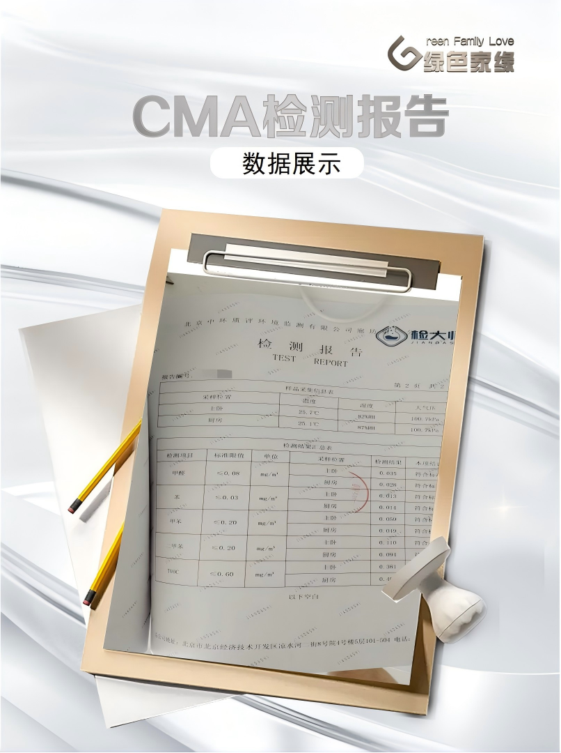 為徹底打消業(yè)主擔憂,我們全程支持業(yè)主自主選擇第三方CMA&CNAS資質檢測機構,并提供全額檢測補貼。最終出具的檢測報告顯示:主臥甲醛含量0.035mg/m3,廚房甲醛含量0.028mg/m3,不僅遠超0.08mg/m3的國家標準,更達到了母嬰級居住安全水平!這份報告已同步上傳至品牌官網,真實可查,用數據擊碎“口頭承諾”的信任壁壘~?